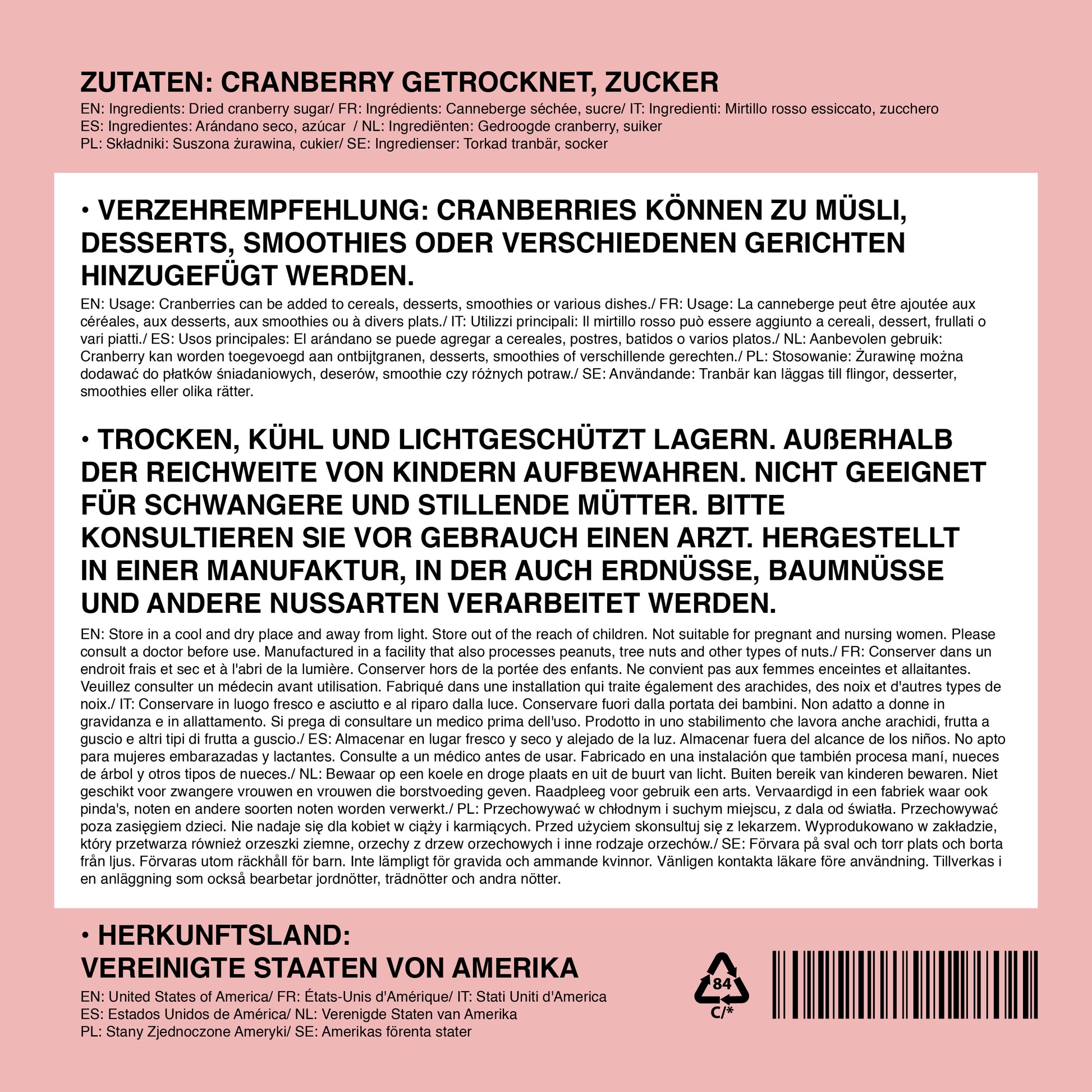 The dried cranberries can be eaten raw or added to smoothies, granola, cookies and cakes. The dried cranberries are great for making Thanksgiving sauce.