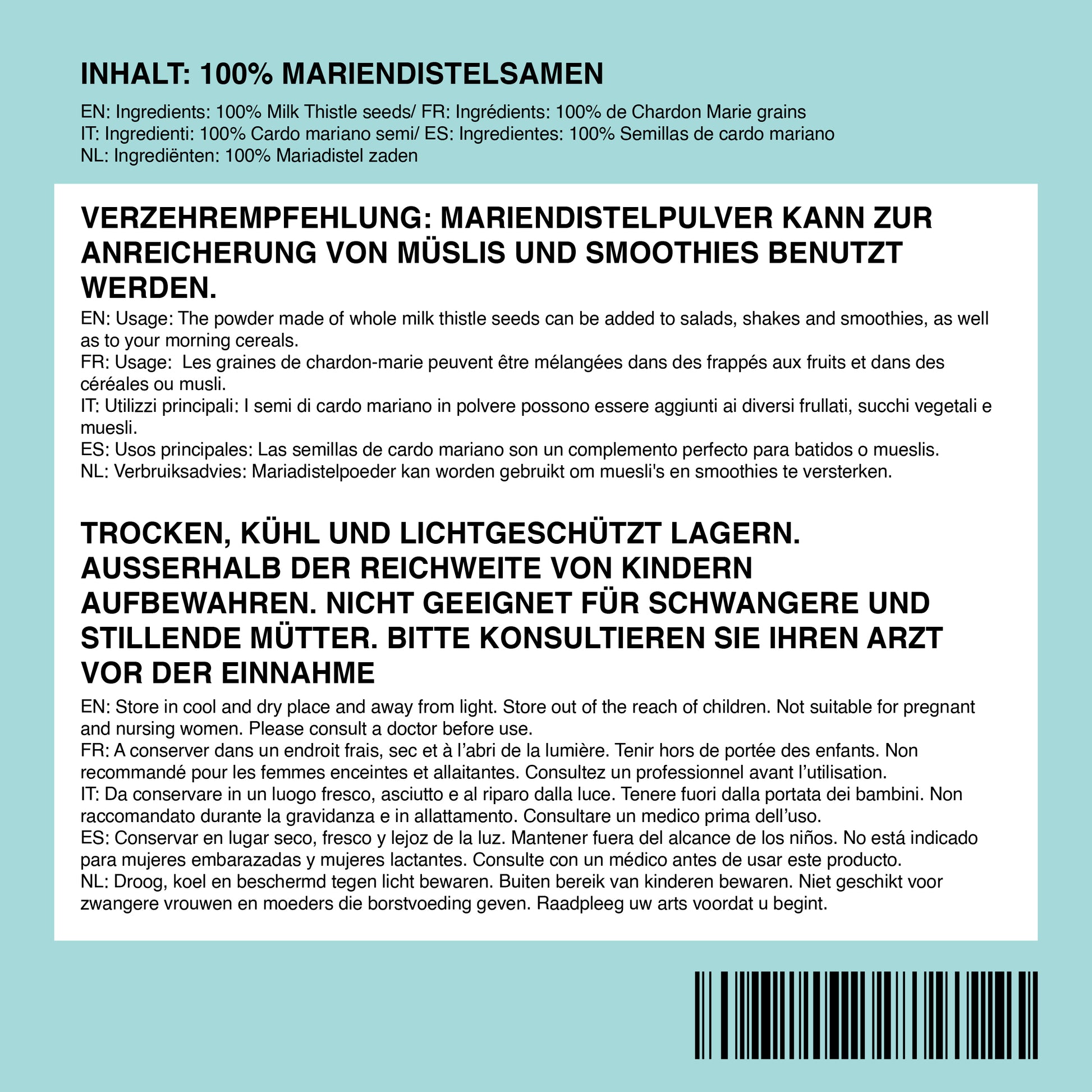 The typical use of powdered milk thistle seeds is in smoothies. The product can also be added to salads, soups, and juices.