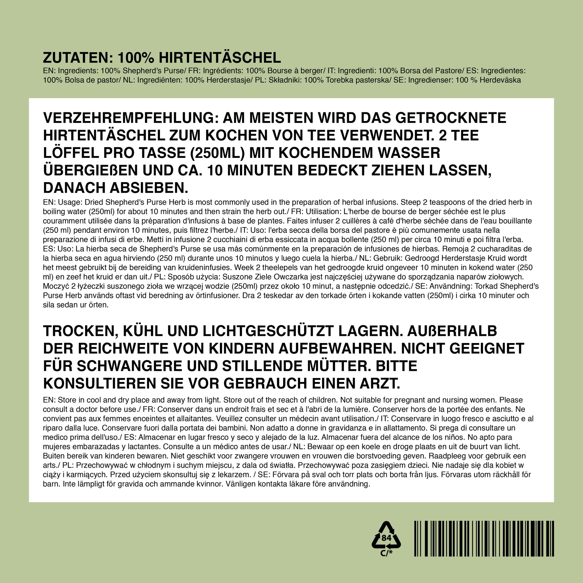 Known for its distinctive leaf shape, the shepherd's purse is a popular herbal tea in Europe and one of the most well-known wildflowers in many countries. Shepherd's purse is collected in early summer during flowering. Its taste is slightly bitter.
